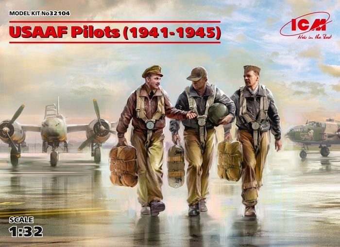 The set includes 3 figures of USAAF Bomber Crew of 1941-1945 period. Includes 29 parts