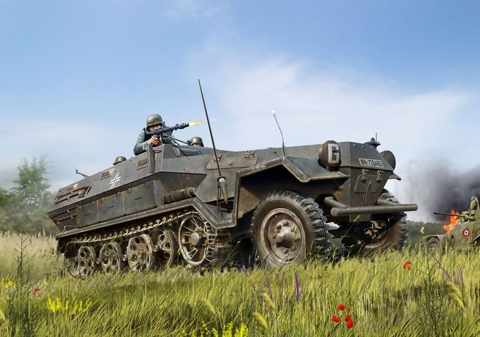 The main armoured personnel carrier of the German Wehrmacht was the half-track Sd.Kfz.251, created by the firm “Hanomag”. It was used to transport motorized infantry (Sd.Kfz.251/1) and heavy weapons, sanitary, staff vehicles and communication vehicles were created on its basis. The armoured personnel carriers were in service with the German army throughout the Second World War and were used in all theaters of war. A total of 15252 vehicles were produced