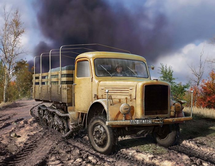 KHD S3000 trucks were widely used in all German arms of service up to the end of war everywhere – in the Soviet-German front, in North Africa, Italy, France. In off-road condition not-all-drive vehicles showed low cross-country capability, so 1740 of KHD S3000 were produced as Maultier half-track vehicles in 1942 – 1944.