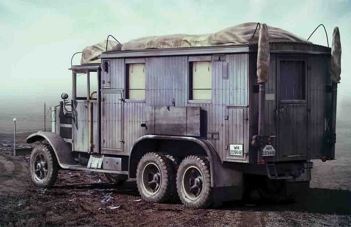 Some chassis had special bodies. One of them was Kfz.72 van body. These machines were used as transmitters and receivers in the powerful A/B mobile radio stations.