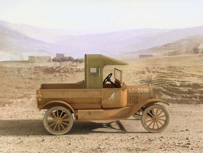 One of the most numerous and famous cars in the world’s history was the Model T produced by the Ford Motor Company. Those cars were widely used in fronts of WWI. In particular, the Australian Mounted Division had some British Ford production Model T cars with small cargo body. Those vehicles saw combat in Egypt and Palestine in 1917-1918.