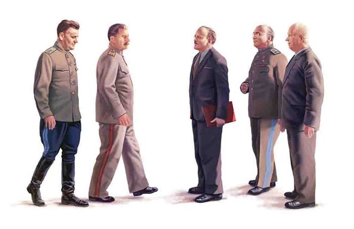 The set includes five figures of Soviet Spring 1945 period leaders – I. V. Stalin, V. M. Molotov, L. P. Beriya, N. S. Khrushchev, N. S. Vlasik.