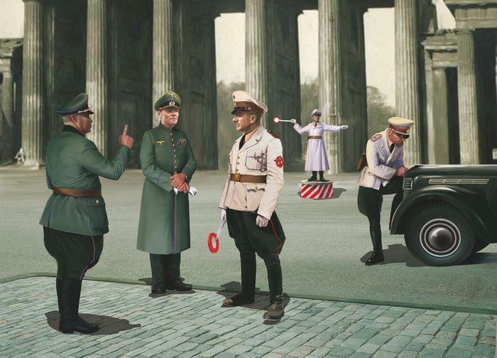 The set includes 46 parts for assembly 5 figures of WWII German Road Police.