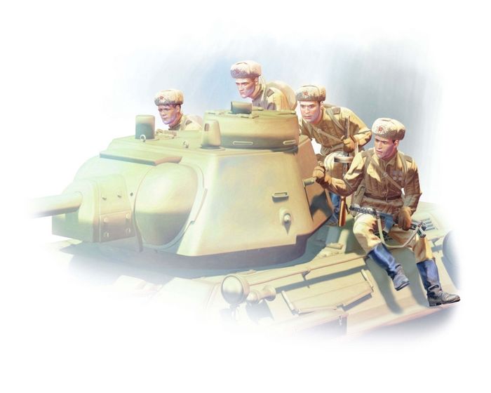 The set includes 51 parts for assembly 4 figures of Soviet Tank Riders of 1943-1945 period .