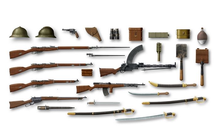 The set includes 128 parts for assembly WWI Russian Infantry Weapon and Equipment .