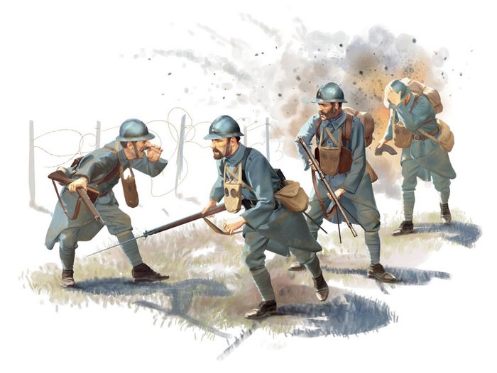 The set includes 48+97 parts for assembly 4 figures of French Infantry of 1916 period.