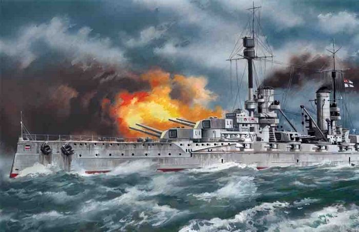 Battleships of “König” class were mighty vessels, excellently geared for North Sea conditions. The four sisterships formed the 3rd Squadron of Open Sea Navy (Hochseeflotte). The 3rd Squadron of Battleships took part in all battle operations of Open Sea Navy after the WWI started. One of the sorties caused the Battle of Jutland May 31 – June 1, 1916, – the greatest and fierce sea battle of WWI. British battleships “Warspite”, ”Valiant” and “Malaya” were severely damaged by the fire of the 3rd Squadron of Battleships.