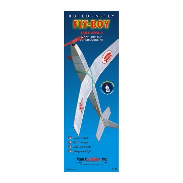 The Fly-Boy requires you to use all the simple building methods experianced in the first three kits. This challenging airplane will reward you with the longest and highest flight performance ever!