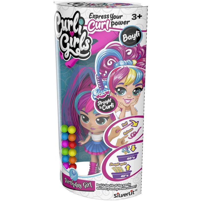 The doll with the Magic Curling hair! Hair that curls instantly when you pull it. The longer you pull, the tighter the curl and then you can style away!