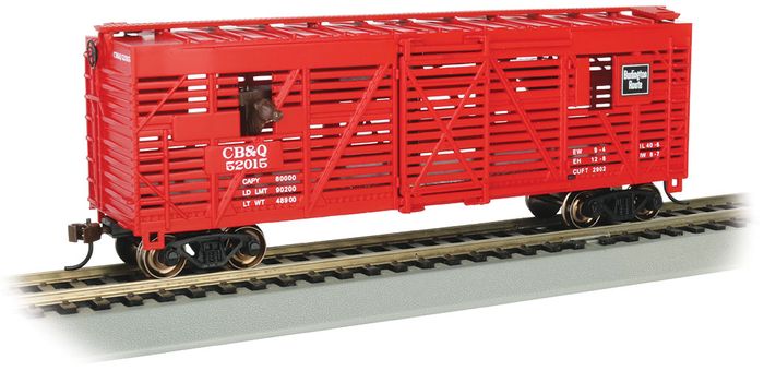 Bachmann CB&Q #52015 40ft Animated StockCar with Cattle. HO Scale