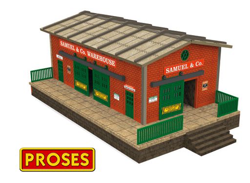 Bring your trackside industry to life with the PROSES O Scale Warehouse, featuring motorized opening and closing doors! Additional features on this easy-to-build structure include accurate exterior colors, realistic signage, see-through windows, and platform fencing.