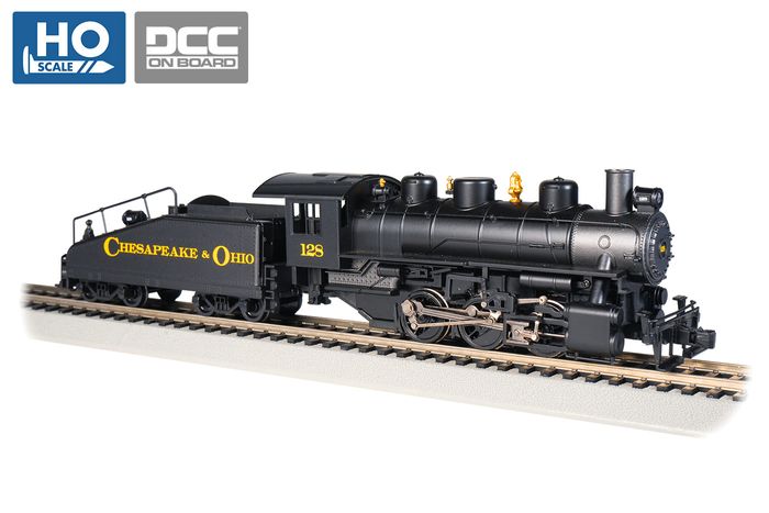 USRA 0-6-0 & Slope Tender - Chesapeake & Ohio® #128 - HO Scale. With production beginning in 1918, the USRA 0-6-0 was one of a selection of locomotives designed by the United States Railroad Administration during the brief period in World War 1 when the US rail network was nationalized under government ownership. Classified as a light switcher, the type saw widespread success in both light freight and yard duties, and many railroads went on to run these plucky workhorses for several decades, once the rail system was turned back to the original operators. Bachmann's USRA 0-6-0 features realistic detail and an operating smoke unit. DCC ON BOARD™ locomotives feature dual-mode digital command control decoders enabling operation with a standard DC analog power pack or any NMRA-compliant Digital Command Control system. Speed, direction, and lighting control. Performs best on 18" radius curves or greater.