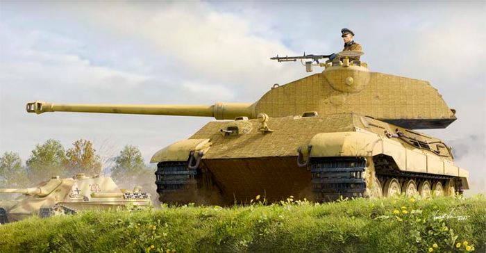 In early October 1942, plans for production of the VK 45.03 were reviewedï¼Initially two designs were provided, one by Henschel and one by Porsche. Both used a turret design from Krupp; the main differences were in the hull design, transmission and suspension.