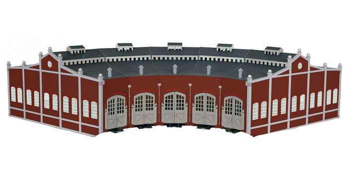 With the Five Bay Roundhouse, you can keep your locomotives on track and under cover while not in use, just like on the real railroad. This snap-fit locomotive facility includes five individual storage bays long enough to hold most steam or diesel locomotives, and five straight sections of Nickel Silver E-Z Track® with separate snap-fit track ends.