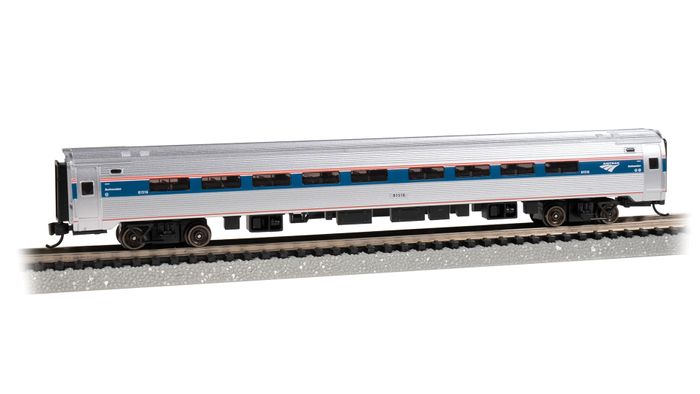 Budd Amfleet® I #81516 - Business Class Car (Phase VI) - N Scale. Developed by the Budd Company in the mid-1970s, the Amfleet I was the first single-level passenger car designed exclusively for Amtrak®. With over 350 still in service across the United States today, it remains the backbone of Amtrak’s single-level passenger car fleet and can be found on regional and intercity trains from coast to coast. Bachmann’s N scale Amfleet I features a fully detailed and lighted interior, all-metal wheels, and body-mounted E-Z Mate® Mark II couplers.