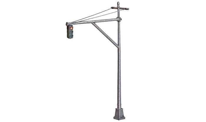 The Mast Arm Traffic Lights hang over part of the intersection and are used for intersections located on suburban or small-town roads. They are ready to place right out of the package. They're hand-painted and authentically weathered. The Traffic Lights are pre-wired and made for use with the Just Plug® Lighting System.