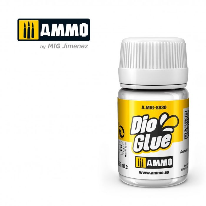 High strength acrylic glue. Specifically designed to fix scenic vegetation elements including the wide selection of mosses offered by AMMO, static grass, plants, leaves, and more easily without leaving any residue whatsoever. DIO GLUE can be precisely applied with a brush and can be diluted and cleaned with water. Dries to a completely transparent finish in 24 hours.