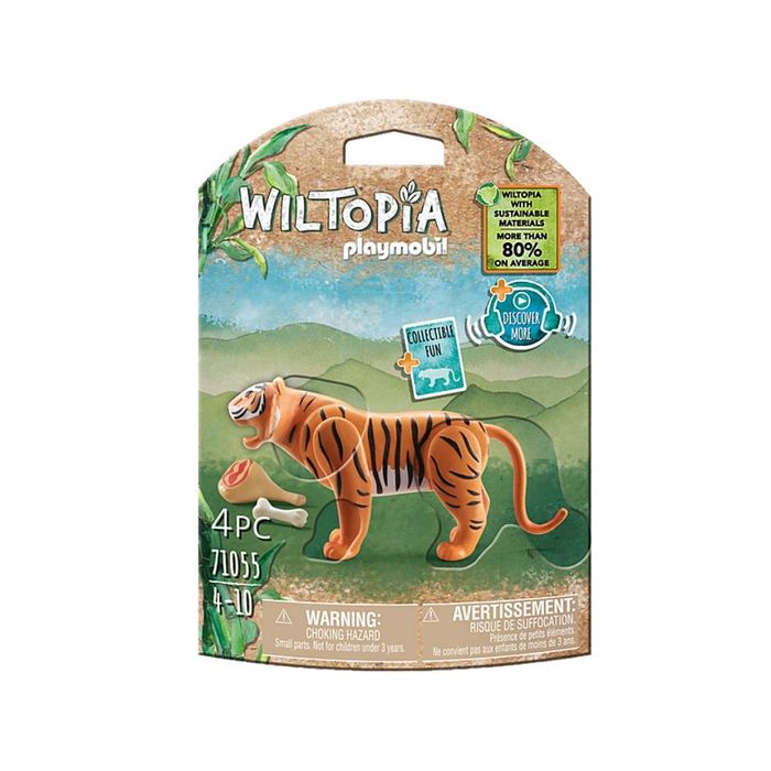 WILTOPIA is PLAYMOBIL's first eco-friendly product line consisting of, on average, more than 80% sustainable materials. The set includes a PLAYMOBIL Tiger with accessories, animal knowledge card to collect and exciting audio content. The WILTOPIA series from PLAYMOBIL lets children discover animals and nature in their own cosmos and immerse themselves in imaginative role play.