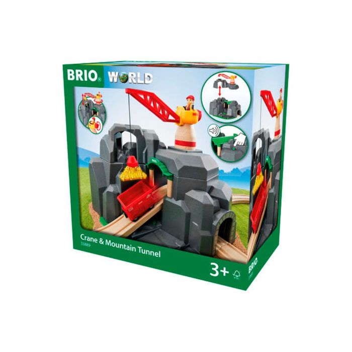 Every corner of the Crane & Mountain Tunnel offers something new to discover. Lift the crane and top of the mountain off and place it on the track for dual functionality. In addition to the multistorey railway passage and the majestic crane on top, four different sounds activate when the train is passing through the mountain. This is a treasure trove of playful function and design - you might even find some gold!
