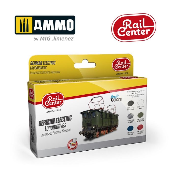Rail Center is AMMO´s new exclusive range of acrylic colours for painting rolling stock of all scales. Acrylic Colors Set.6 jars 17mL