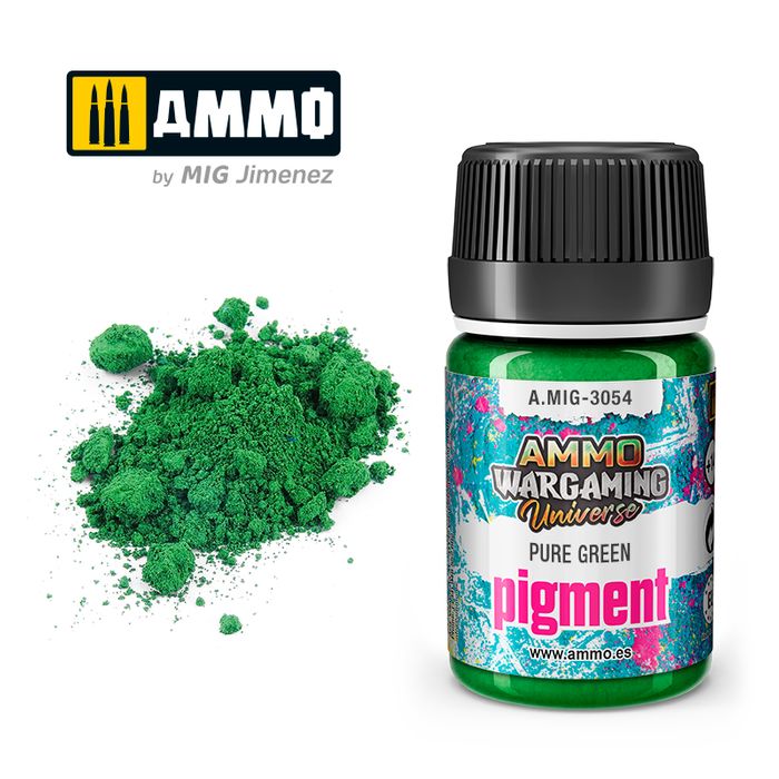 Use AMMO's pigments to add richness and colour variety to any surface. These shades offer a highly saturated and intense finish. These pigment colours have high-quality, super-finely ground pigments made with natural products for modelling use. Using various techniques, you can recreate many types of weathering effects including rust, dust, dirt, and many more. Pigments are usually applied using a brush; for application we recommend AMMO´s Precision Pigment brushes range. These pigments can also be airbrushed by mixing them with Enamel Odourless Thinner (A.MIG-2018), which allows you to obtain a smooth colour transition. If you need a strong and durable adhesion to the surface, add a drop of Pigment Fixer (A.MIG-3000) and let it dry.