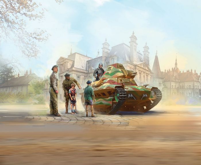 The set includes 158 parts for assembly of FCM 36 tank model and 34 parts for assembly of five figures – three WWII French tankers and two boys.