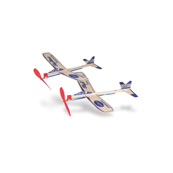 2 of the Sky Streak Motorplane in one box. Our best selling motorplane. This toy airplane has a one piece wing with a built-in dihedral. The propeller and nose bearing made of hi-impact plastic.