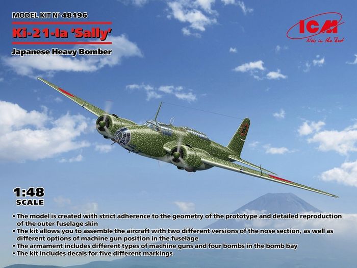 The Ki-21 pre-production bomber made its first flight in late 1936. Serial production of its first modification, the Ki-21-Ia, began in 1938, the same year the aircraft made its combat debut. Air units of the Imperial Japanese Army, which were equipped with the Ki-21-Ia, were involved in active combat operations in China. In the spring of 1939, the Ki-21-Ia took part in combat operations against the Red Army on the Halhin Gol River. The aircraft’s combat payload of 1,000 kg was a good indicator of its time and allowed for massive bombing strikes, and the defensive tactics developed by the pilots of these bombers in air battles resulted in their fairly low losses compared to other types of aircraft. After more advanced models were produced, the first modification bombers were transferred to training units, although a certain number of Ki-21-Ia continued to be operated by combat units. American pilots, who gave Japanese aircraft their own names, referred to Ki-21 bombers as ‘Sally’.