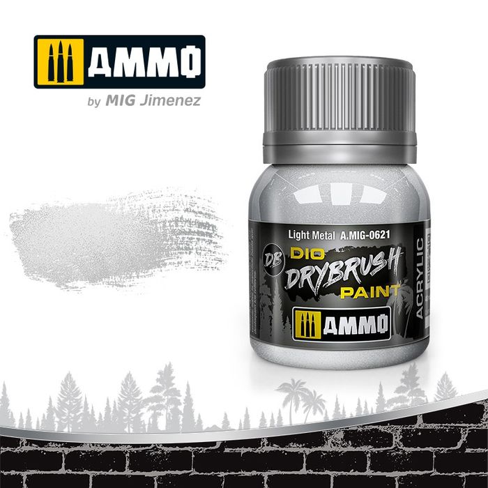 AMMO has designed a new paint formula specifically for drybrushing with the ideal density and specific characteristics that make it the best type of paint for this technique. The new DIO DRY BRUSH is the perfect solution for all those modellers who love this iconic technique, arguably one of the simplest and most effective weathering techniques. Simply use a brush of any size, load it with paint, dry it to the touch by rubbing it on a piece of paper towel or a cloth to remove the excess, and then apply it by gently rubbing onto the details of your model to create a smooth, uniform texture.
