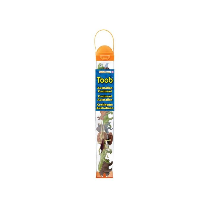 Characteristics: This TOOB includes re-usable packaging with a latching top and carry strap that makes it portable and convenient! It includes 9 miniature yet highly detailed animal figures representing the fauna of Australia and New Zealand: a Frilled Lizard, a Platypus, a Wombat, a Crocodile, a Kakapo, a Kiwi, a Tuatara, a Giant Weta, and a Kangaroo.