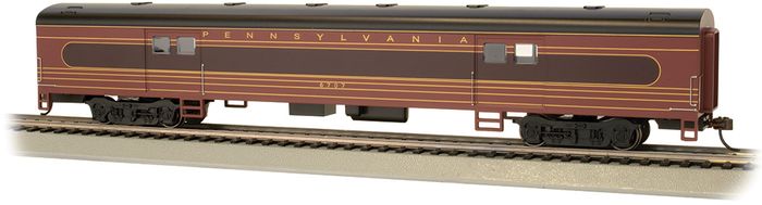 72' Smooth-Side Baggage Car - PRR #6707 - FLEET OF MODERNISM - HO Scale. In the 1930’s lighter weight materials allowed for the development and production of a variety of coach, baggage, and observation cars as railroads ushered in the beginning of the streamline era. Materials like stainless steel, and aluminum, allowed for passenger cars to have smooth or fluted sides and smooth roof lines.