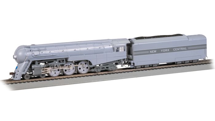Entering service in 1938, the Streamlined Hudson was one of several locomotives that would come to define the Art Deco period of design. While the locomotive remained mechanically identical to previous, non-streamlined Hudsons, the styling by industrial designer Henry Dreyfuss updated the external cladding to rival the modern appearance of its early-diesel peers. The locomotive and matching passenger car sets were primarily used on the prestigious 20th Century Limited between New York and Chicago until being phased out in favor of diesel power in 1945. The Bachmann Dreyfuss Streamlined Hudson arrives with all of the authentic and interactive features found on the standard J3a Hudson, including dual-mode TCS WOWSound® DCC with CD quality audio, a Keep Alive® device for uninterrupted performance, and Chuffinity™ technology for prototypical load-based chuff intensity.