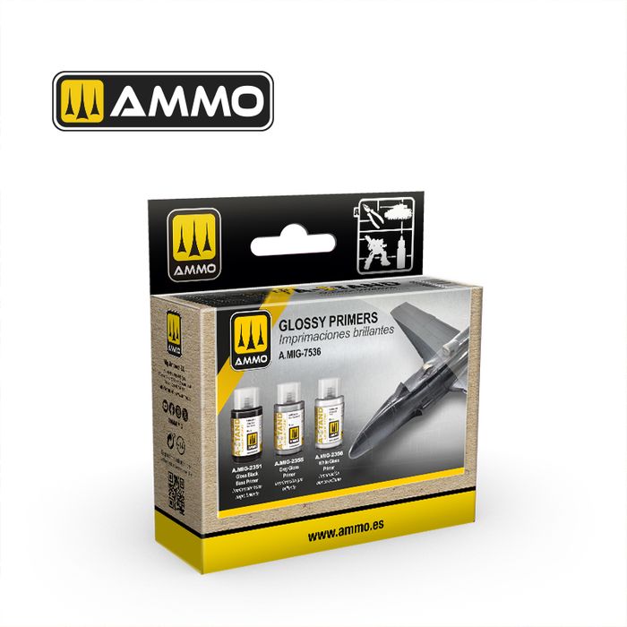 With this primer set you can choose the most appropriate colour to prime any model. The glossy primers from A-STAND are highly resistant and leave a completely smooth finish. The Glossy Black primer is an excellent foundation for applying metallic colours, preserving all their characteristic metallic shine.