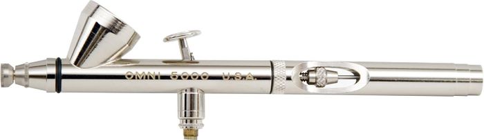 The Omni series was designed for tight detail to broad spraying using a "One tip-one needle" combination. When trying for that one last detail, just the right blend or a great smooth finish Omni detail guns are ideal. Omni airbrushes work well at low or high pressures for varying applications. Besides performing well with finely ground colors, Omni airbrushes can handle heavier automotive paint with no need to change tips/needles. Designed with state of the art engineering, Omni airbrushes are manufactured to the tightest possible tolerances. Omni airbrushes feature heavy nickel chrome plating, superior balance, solvent resistance o-rings and numerous other performance enhancements. Omni airbrushes are known worldwide as the performance and price preference to other similarly designed airbrushes. The reversible air cap guard is unique and exclusive to Omni airbrushes. Reversing the air cap guard creates a smooth, aerodynamically rounded area at the tip/needle intersection enabling optimum air flow efficiency for the sharpest and finest lines. The "reverse-a-guard" air cap allows for easy removal of tip dry. It can also be utilized to protect the needle tip fo novice airbushers or in more delicate airbrush applications.