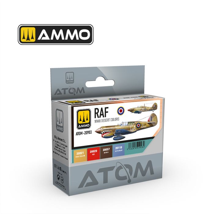 This set solves the issues of choosing the exact tones for your scale models of RAF aircraft, saving valuable time. ATOM paints have a water-based formula that offers all the advantages of lacquer and is optimized for maximum performance with both brush and airbrush. Their features include self-levelling capability, fast drying, and excellent coverage, making them unique in the market. Additionally, they are extremely durable, allowing the use of acrylics, lacquers, enamels, or more aggressive products, such as decal solutions on top of them.