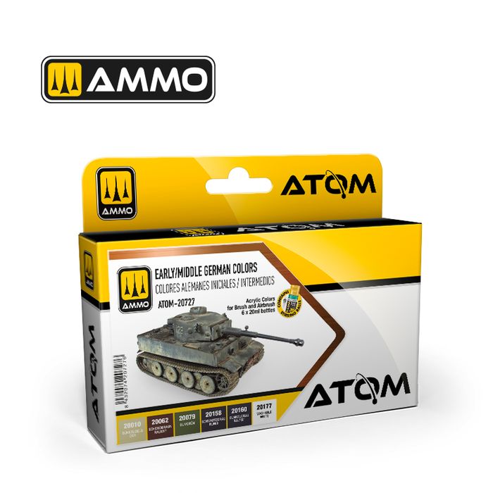 Acrylic Colors Set. 6 ATOM jars 20ml for Early/Middle German Vehicles.