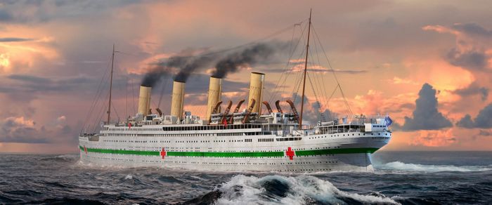 HMHS Britannic, under the White Star Line. White Star is a company in which an Olympic class cruise is RMS Olympic and RMS Titanic's sister ship.