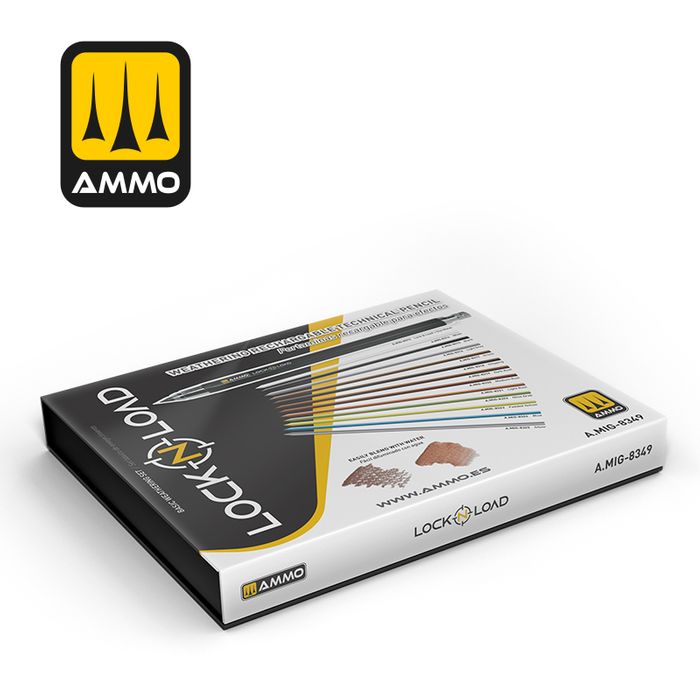 The new LOCK & LOAD mechanical pencil and the 13 lead colours included in this set will revolutionize the way you apply weathering effects thanks how easy is to use and clean, and the precise control in the application it provides.