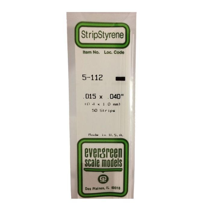 This is a Package of Ten .015 x .040" Styrene Strips from Evergreen.