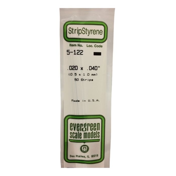 This is a Package of Ten .020 x .040" Styrene Strips from Evergreen.