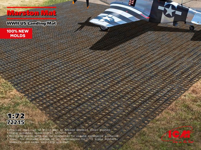 Marston Mat refers to special metal planks used during World War II for the rapid construction of temporary airfields. They were also known as PSP (Pierced Steel Planking). These planks were made of steel, could withstand heavy loads, and allowed for the installation of a stable and durable airfield surface for various types of aircraft on soft or unstable ground. The planks had a perforated design, which allowed water to drain easily without compromising the quality of the surface.