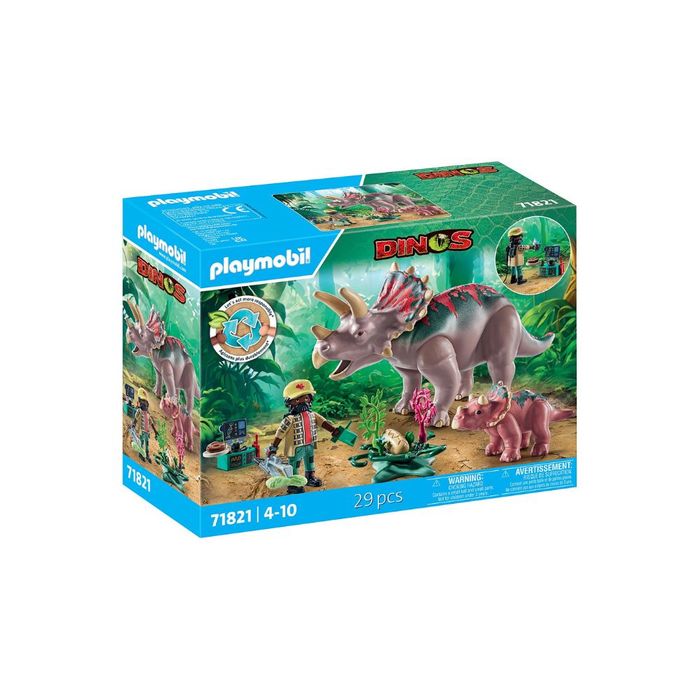 Equipped with research gear, the dinosaur researcher embarks on an exciting journey to study and feed the Triceratops Family in this engaging playset. Explore prehistoric life as you examine a rare Triceratops egg and observe the behavior of the adult and juvenile. Enjoy creative storytelling with movable parts, detachable plants, and fun accessories that spark curiosity and inspire imaginative adventures with the PLAYMOBIL Triceratops Family.