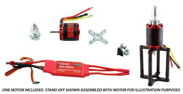 - Each Package contains Outrunner Motor, High Quality ESC with 5A BEC, Motor Mount, Propeller Adaptor, Motor Stand off and Detailed Instructions.