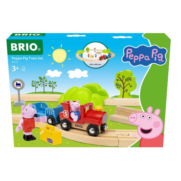 The BRIO Peppa Pig Train Set brings beloved characters to life with 18 pieces of wooden railway fun. This comprehensive collection features Peppa and friends aboard a charming train, complete with track sections and accessories that encourage interactive storytelling.
